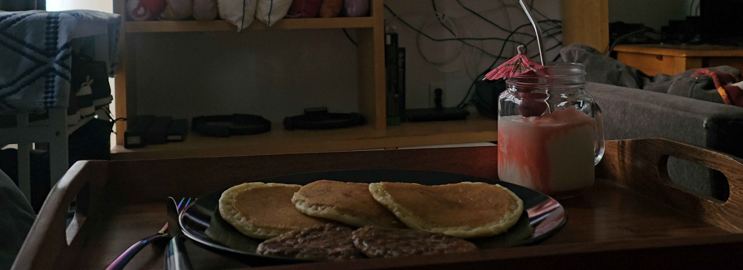 My name is Bobbington and I love to cook. Today I will contribute a comfort breakfast I love to indulge in on the weekend.For reference of the drink, it is Pina colada mix w/ ice blended w/ grenadine