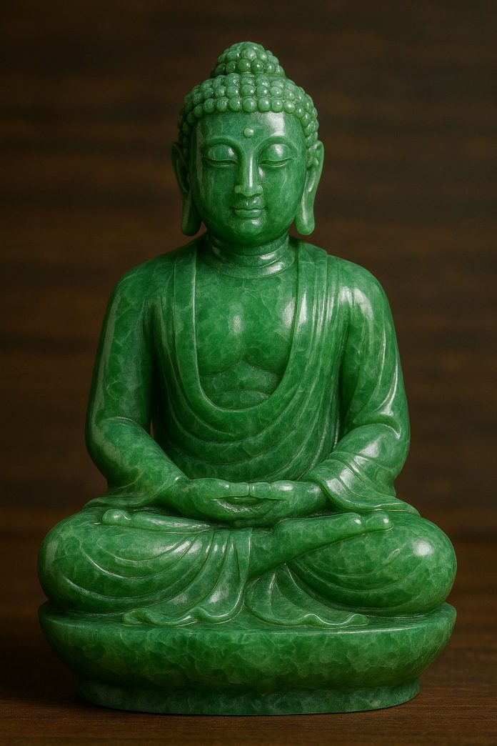 The jade Buddha sits in silence. “Silence carves itself into serenity,”