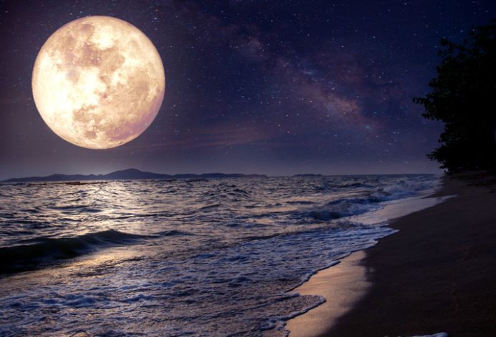 The moon has fallen on the shore.