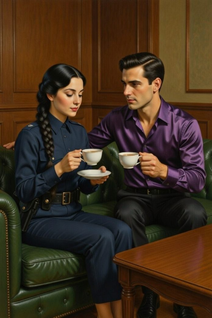 “Make yourself comfortable, Officer. It’ll warm up soon. Want some tea?”