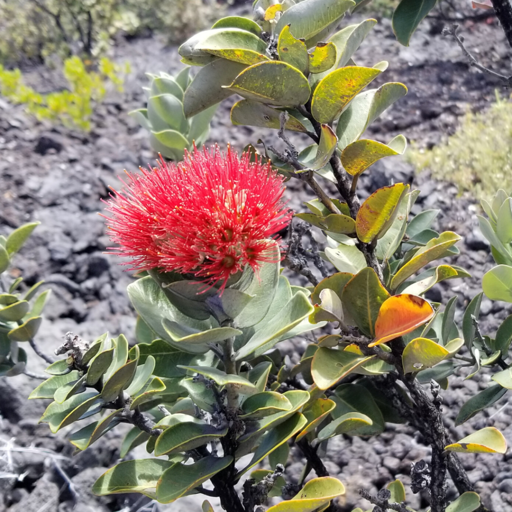 “Legend has it, years ago, a warrior on the Big Island named Ohia pledged his love to a woman named Lehua. But Ohia was very handsome, capturing the interest of the goddess, Pele. She wanted him for herself. Despite her efforts to seduce him, Ohia remained true to Lehua and thus endured many tortures at the hands of the goddess. In the end, Ohia was turned into a tree, but his love for Lehua was everlasting. She was turned into a flower on the tree so they could be eternally united. Today it’s called the Ohia Lehua tree.”