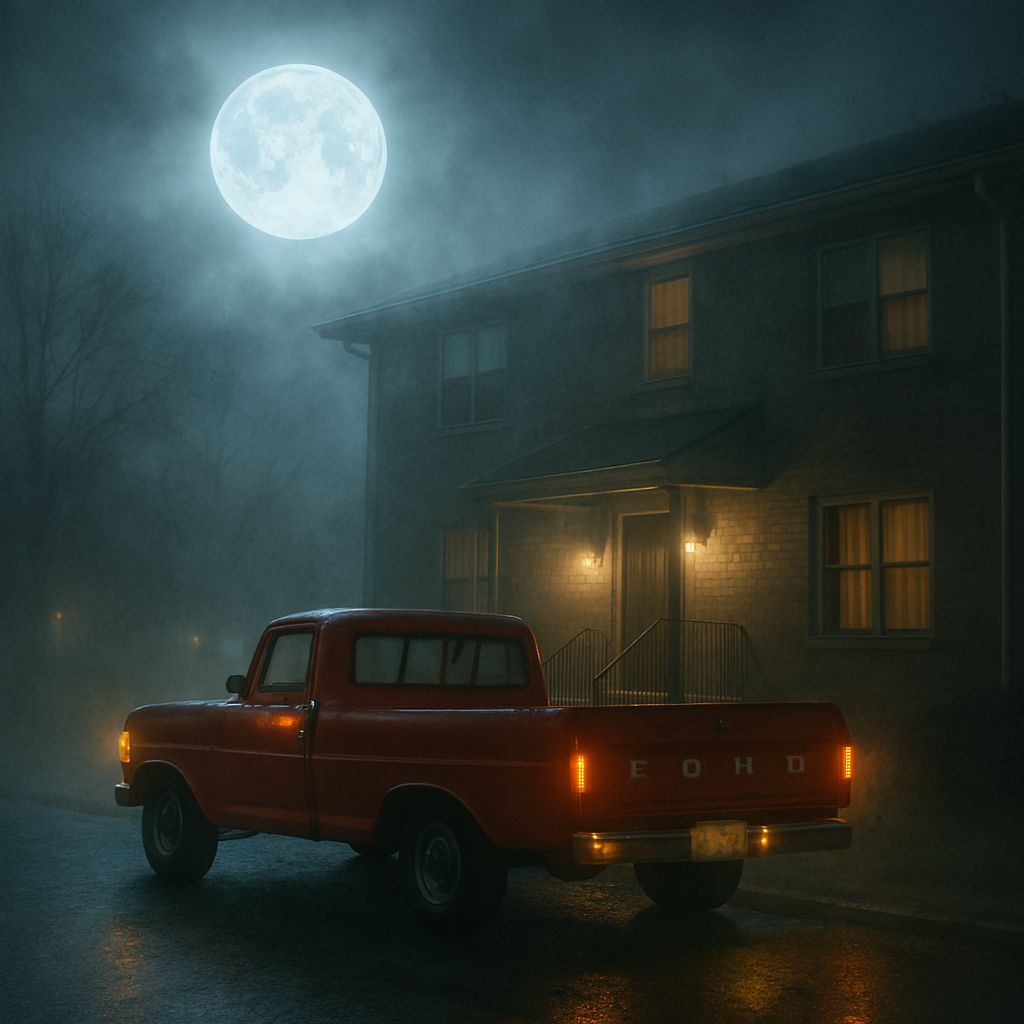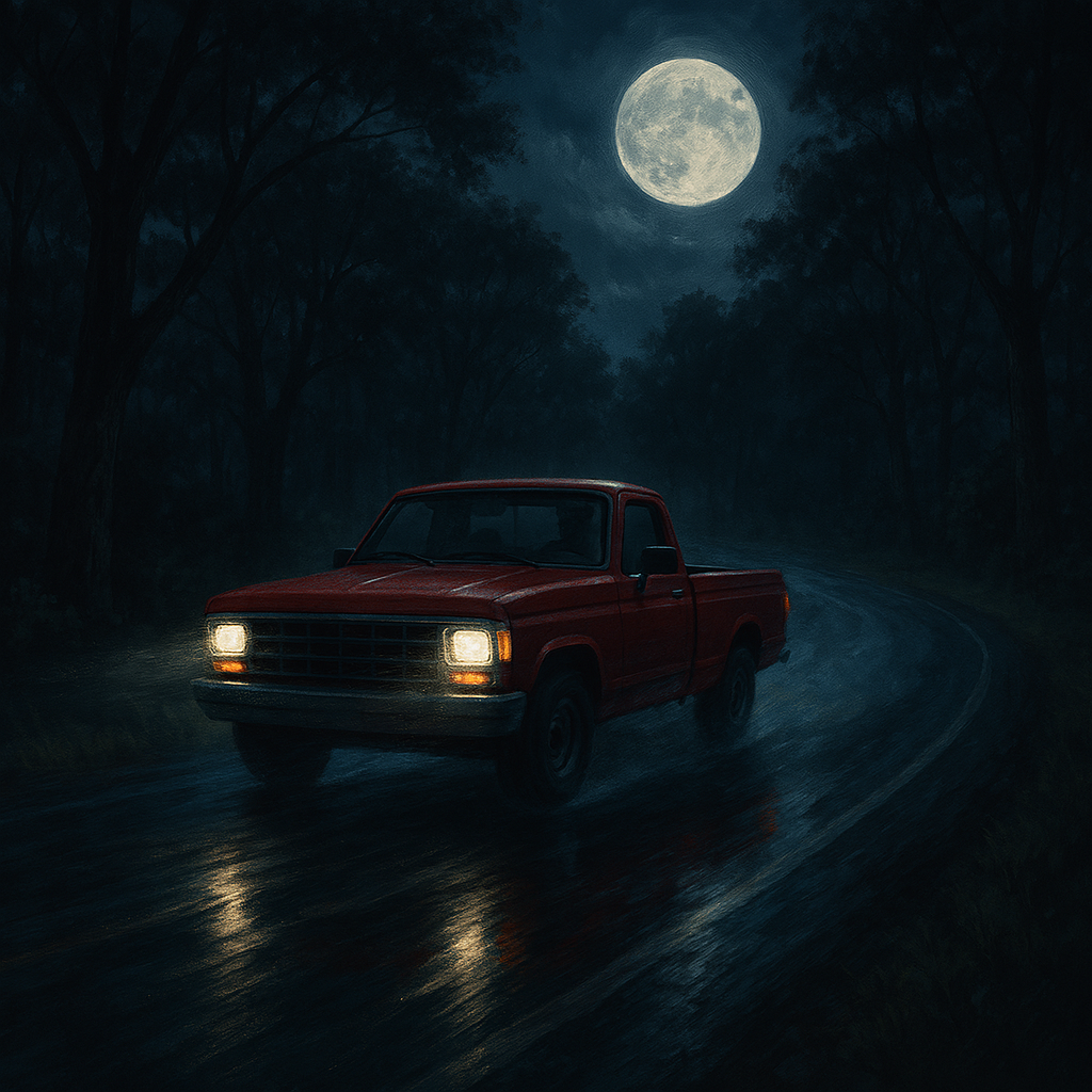 Before we sped off on our death-ride, the full moon shone through the windshield of Billy’s red Ford pickup, which was idling in the hazy chill of an early spring night in front of our buddy Taylor’s porch. Quite inebriated, I had sat myself in the passenger seat.