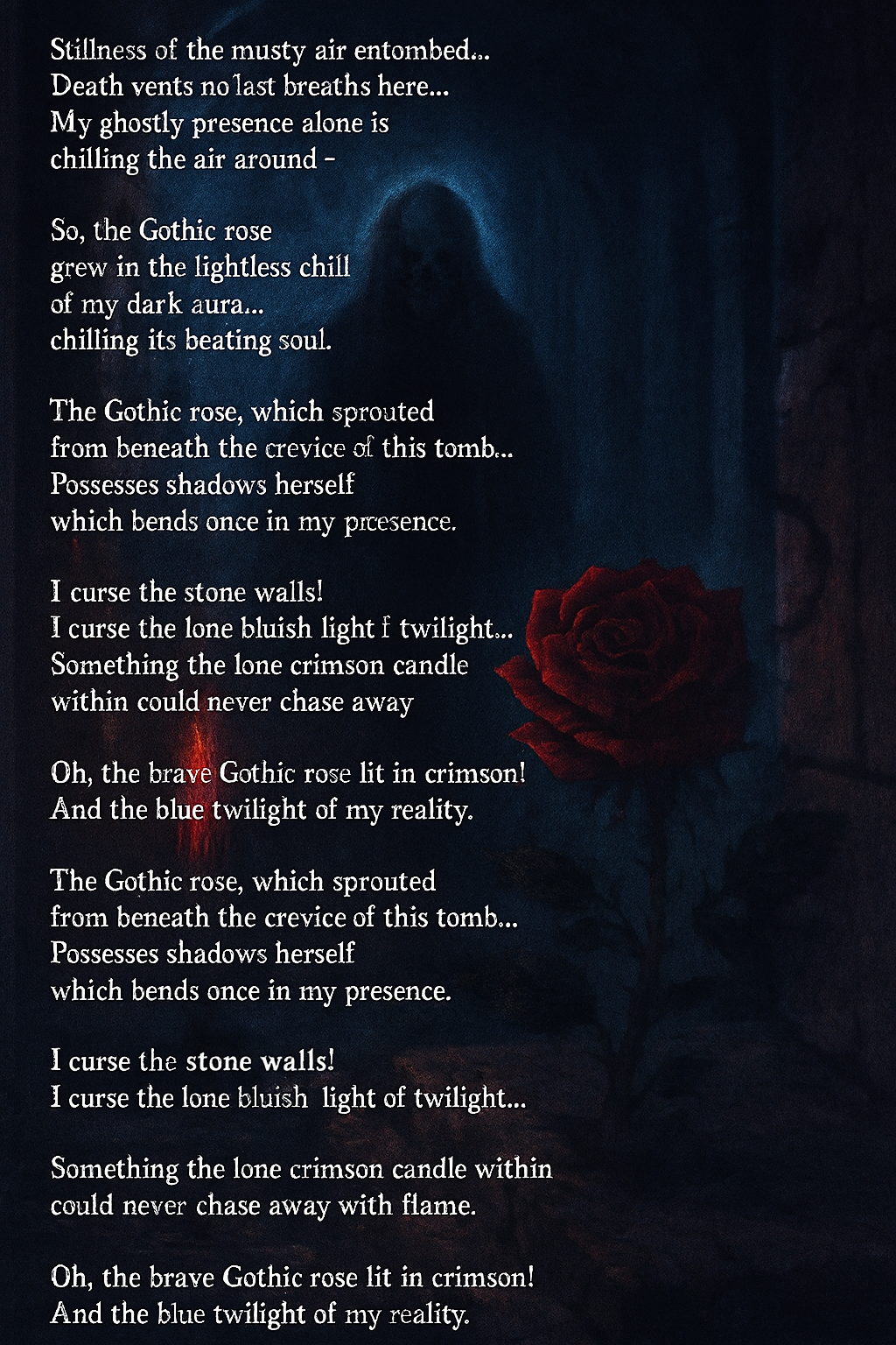 Oh, the brave Gothic rose lit in crimson!