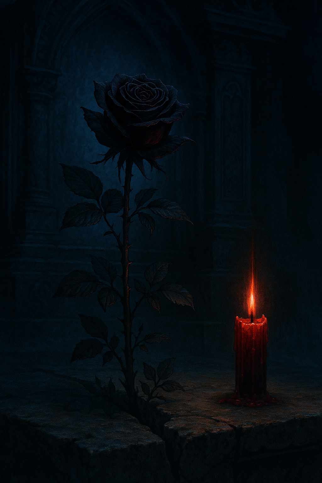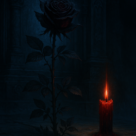 Something the lone crimson candle within